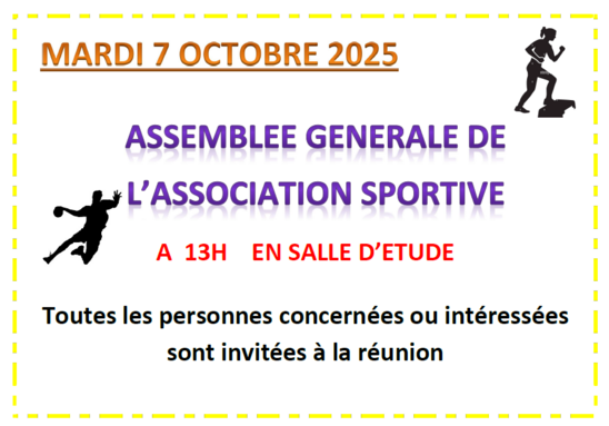 Assemblée Générale MARDI 7 OCTOBRE 13h (salle de permanence) Venez nombreux !