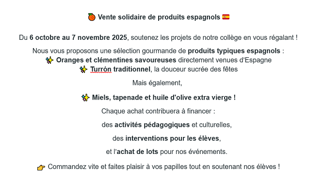 Un projet culturel est à la clé de la réussite de cette vente. On compte sur vous ! 🇪🇸 🍊🍊 🇪🇸